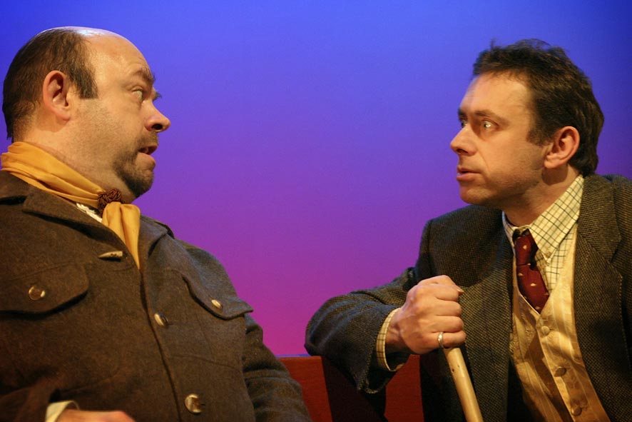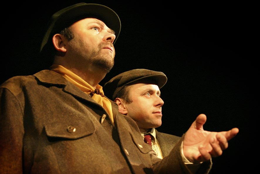 Devant un écran couleur de ciel, George et Emil dépeignent le monde. A la fois dans et hors du tableau, ils jouent l’intermédiaire entre l’image et le public. Et c’est le public qui, avec sa propre imagination, vogue sur le lac et vole avec les canards, libre des regrets et des remords, libre de voyager là où il fait toujours beau.